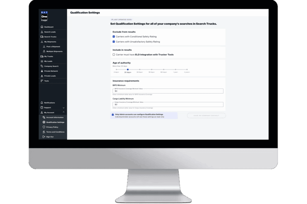 It pays to know who you’re working with, and businesses thrive when built on trusted partnerships. It’s a lot to manage, and you can’t afford to lose time bouncing from one system to the next to source, vet, onboard, book, and track. Cover all your bases with DAT One, which includes a Carrier Management Suite, a set of new tools that allows brokers to proactively source, manage, and book trusted capacity with more customization and efficiency – all in one place.