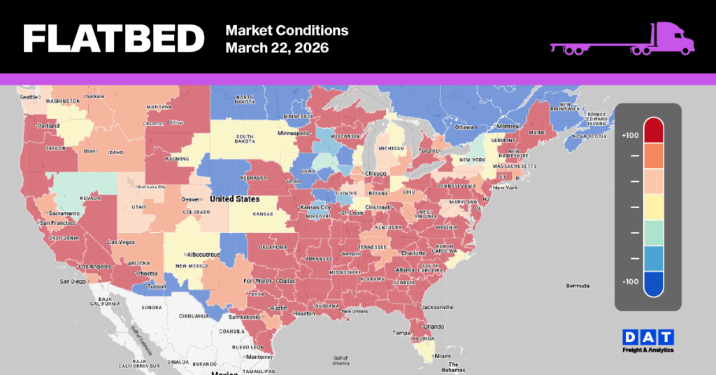 The flatbed market saw a significant tightening last week, with the load-to-truck ratio jumping 10% to 82.39. This climb was driven by a 2% week-over-week increase in flatbed load posts, which marked the highest weekly volume of the year and an impressive 46% rise compared to the same week in the previous year. Concurrently, flatbed equipment posts declined by 8% last week.