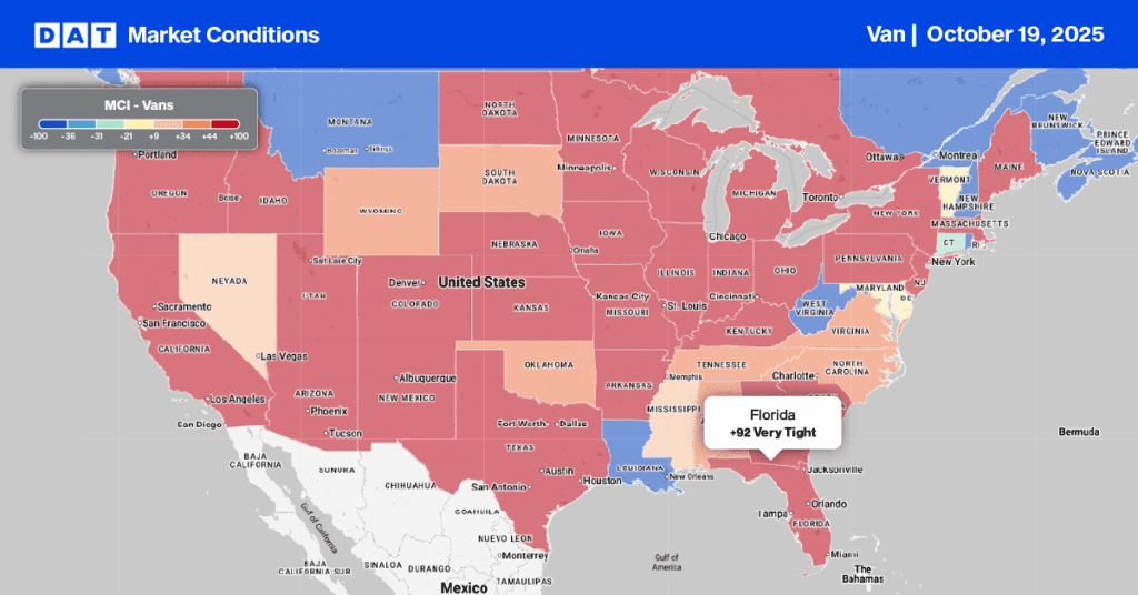 This has led to higher demand for truckload capacity to pick up the shortfall resulting from the intermodal container shortage on lanes from Seattle to Chicago and Los Angeles. Loads moved in the last four weeks have increased by 16% (SEA to CHI) and 2% (SEA to LAX) respectively. Spot rates were also up 11% and 6% month-over-month respectively.